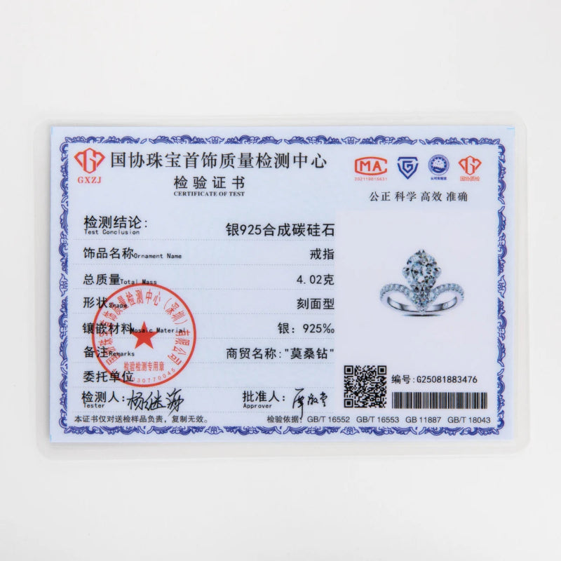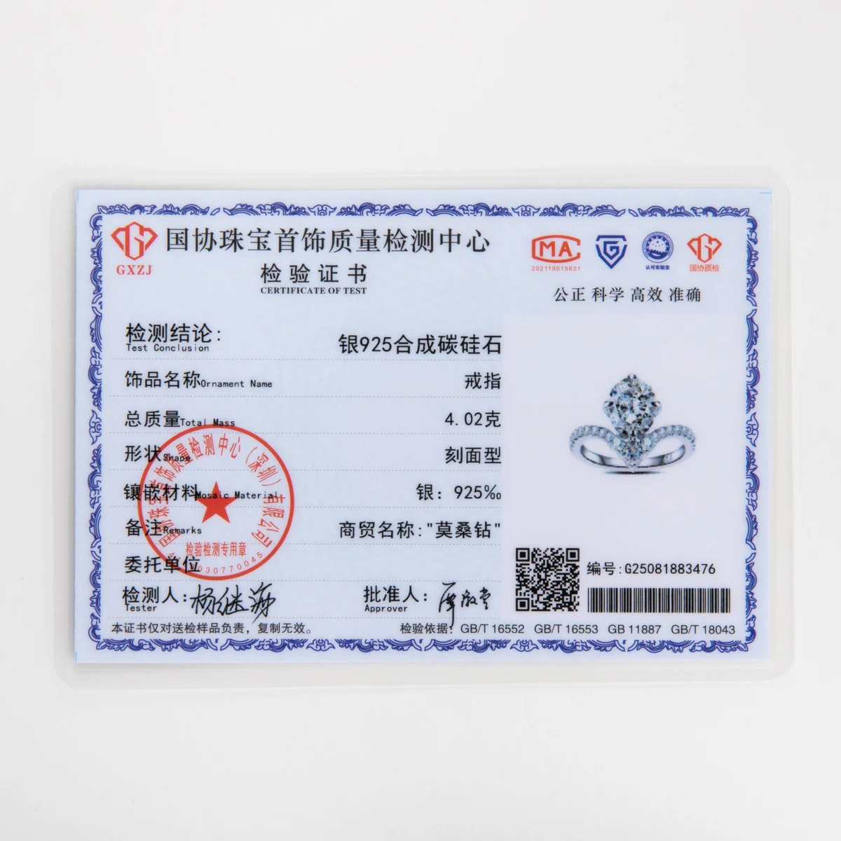 Certified for authenticity, this timeless piece features a dazzling 3ct D color moissanite set in a classic V-shape design. Crafted in 925 sterling silver, it blends durability with brilliance, offering customization to create a unique symbol of love and commitment. Perfect for engagements, weddings, or refined gifts.