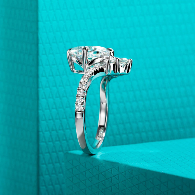 AnuJewel Anel de Noivado Oval 3ct Moissanite D Color em Prata 925 – Design V Elegante